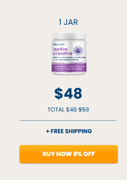 At this moment you can order Native Creatine supplement for 56% OFF + FREE Shipping. This is a Limited-Time Offer and it won’t be available for long.