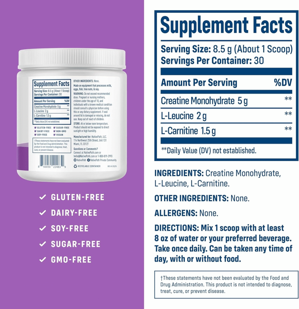 After analyzing every detail of Native Creatine, it’s clear that this is a supplement that truly delivers on its promises. Its formula contains only high-purity creatine monohydrate, globally recognized as the most effective and safest form of creatine. This means you’re not paying for unnecessary fillers — only for what actually works.