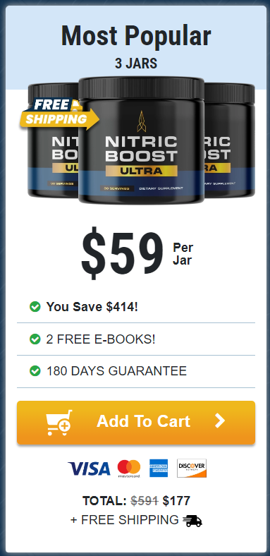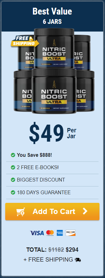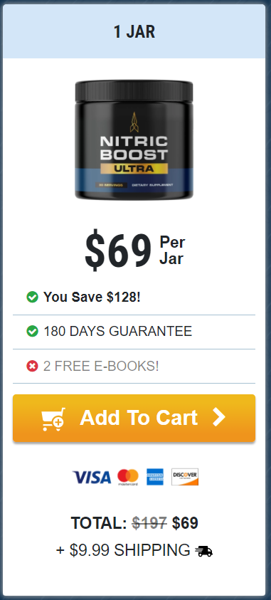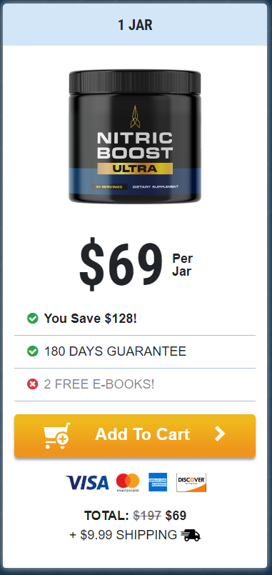 At this moment you can order Nitric Boost Ultra supplement for 82% OFF + FREE Shipping. This is a Limited-Time Offer and it won’t be available for long.