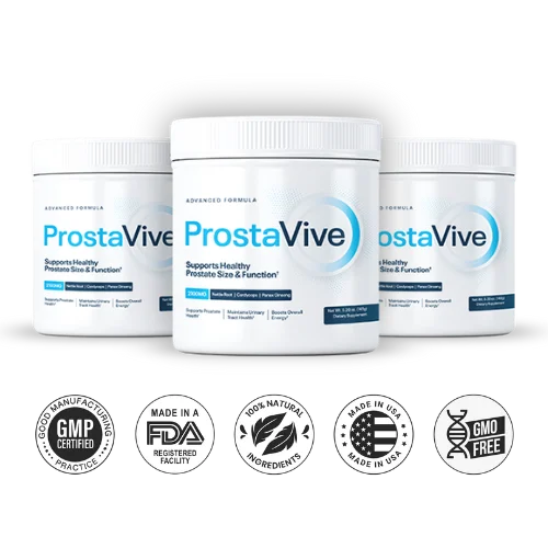ProstaVive is a dietary supplement designed to support a healthy prostate, improve blood circulation, and boost energy levels. This is a blend of clinically proven natural ingredients and nutrient extracts. The supplement is manufactured in an FDA-registered and GMP-certified facility in the US.