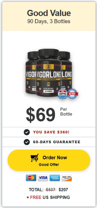 At this moment you can order VigorLong supplement for 82% OFF + FREE Shipping. This is a Limited-Time Offer and it won’t be available for long.